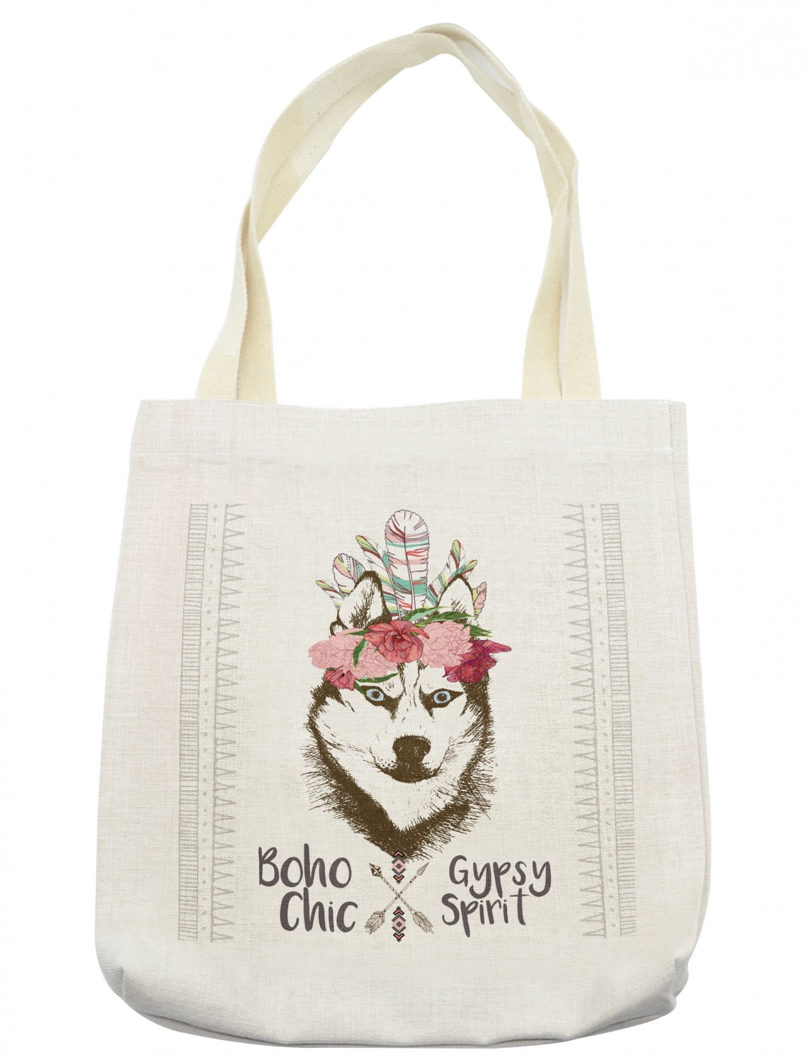 Wolf Tote Bag Pattern Of Floral Head Portrait Of Siberian Husky Dog Tribal Arrow Elements Image Cloth Linen Reusable Bag For Shopping Books Beach And More 16 5 X 14 Cream By Ambesonne